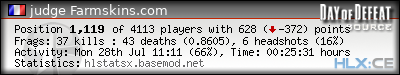 | Rank | Server | Kills | % | Ratio | Deaths | K:D | Headshots | Percentage of Headshots | % | HS:K |