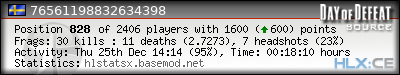 | Rank | Map | Kills | % | Ratio | Deaths | % | Ratio | K:D | Headshots | % | Ratio | HS:K |