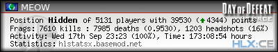 | Rank | Server | Kills | % | Ratio | Deaths | K:D | Headshots | Percentage of Headshots | % | HS:K |