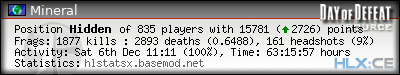 | Rank | Server | Kills | % | Ratio | Deaths | K:D | Headshots | Percentage of Headshots | % | HS:K |