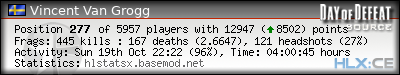 Rank | Server | Kills | % | Ratio | Deaths | K:D | Headshots | Percentage of Headshots | % | HS:K |