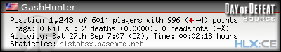 | Rank | Role | Joined | % | Ratio | Kills | Deaths | K:D |