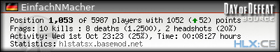 Rank | Map | Kills | % | Ratio | Deaths | % | Ratio | K:D | Headshots | % | Ratio | HS:K |