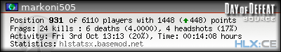 | Rank | Server | Kills | % | Ratio | Deaths | K:D | Headshots | Percentage of Headshots | % | HS:K |