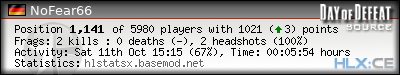 Rank | Map | Kills | % | Ratio | Deaths | % | Ratio | K:D | Headshots | % | Ratio | HS:K |