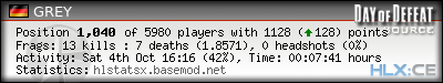 3 | »» GunGame only! // by www.BASEMOD.net [EU] | 2 | 15.38% | 3 | 0.6667 | 0 | % | 0.0000 | ||