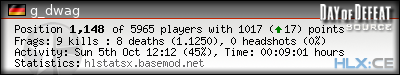 Rank | Map | Kills | % | Ratio | Deaths | % | Ratio | K:D | Headshots | % | Ratio | HS:K |