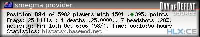 Rank | Server | Kills | % | Ratio | Deaths | K:D | Headshots | Percentage of Headshots | % | HS:K |