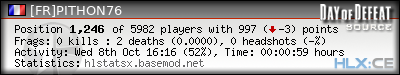 Rank | Map | Kills | % | Ratio | Deaths | % | Ratio | K:D | Headshots | % | Ratio | HS:K |