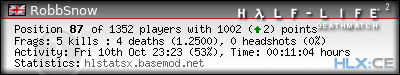 | Headshots per Kill: | 0.0000 (0.0000*) | |