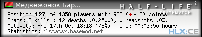 | Rank | Map | Kills | % | Ratio | Deaths | % | Ratio | K:D | Headshots | % | Ratio | HS:K |