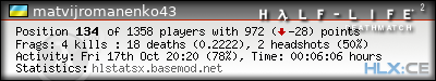 | Rank | Map | Kills | % | Ratio | Deaths | % | Ratio | K:D | Headshots | % | Ratio | HS:K |