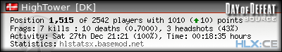 | Rank | Map | Kills | % | Ratio | Deaths | % | Ratio | K:D | Headshots | % | Ratio | HS:K |