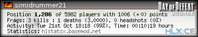 Rank | Map | Kills | % | Ratio | Deaths | % | Ratio | K:D | Headshots | % | Ratio | HS:K |
