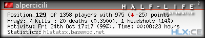 | Rank | Map | Kills | % | Ratio | Deaths | % | Ratio | K:D | Headshots | % | Ratio | HS:K |