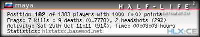 | Rank | Map | Kills | % | Ratio | Deaths | % | Ratio | K:D | Headshots | % | Ratio | HS:K |