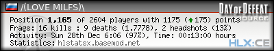 | Rank | Map | Kills | % | Ratio | Deaths | % | Ratio | K:D | Headshots | % | Ratio | HS:K |