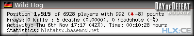 | Rank | Map | Kills | % | Ratio | Deaths | % | Ratio | K:D | Headshots | % | Ratio | HS:K |