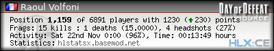 | Rank | Map | Kills | % | Ratio | Deaths | % | Ratio | K:D | Headshots | % | Ratio | HS:K |