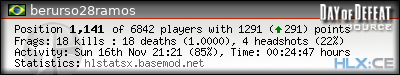 | Rank | Server | Kills | % | Ratio | Deaths | K:D | Headshots | Percentage of Headshots | % | HS:K |