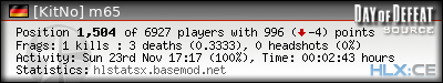 | Rank | Map | Kills | % | Ratio | Deaths | % | Ratio | K:D | Headshots | % | Ratio | HS:K |