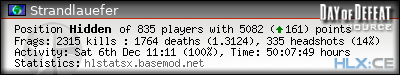 | Rank | Server | Kills | % | Ratio | Deaths | K:D | Headshots | Percentage of Headshots | % | HS:K |
