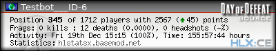 | Rank | Map | Kills | % | Ratio | Deaths | % | Ratio | K:D | Headshots | % | Ratio | HS:K |