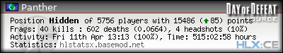 | Headshots per Kill: | 0.1037 (0.2000*) | |