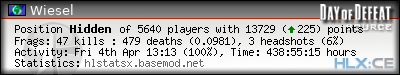 | Rank | Server | Kills | % | Ratio | Deaths | K:D | Headshots | Percentage of Headshots | % | HS:K |