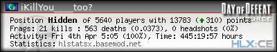 | Headshots per Kill: | 0.1314 (0.2000*) | |