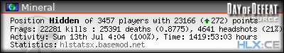 | Rank | Server | Kills | % | Ratio | Deaths | K:D | Headshots | Percentage of Headshots | % | HS:K |