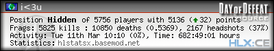 | Rank | Server | Kills | % | Ratio | Deaths | K:D | Headshots | Percentage of Headshots | % | HS:K |