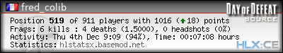 | Rank | Map | Kills | % | Ratio | Deaths | % | Ratio | K:D | Headshots | % | Ratio | HS:K |