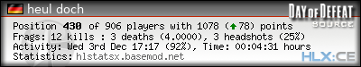| Headshots per Kill: | 0.2500 (0.2500*) | |