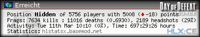 | Rank | Server | Kills | % | Ratio | Deaths | K:D | Headshots | Percentage of Headshots | % | HS:K |