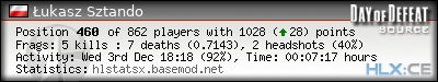| Rank | Map | Kills | % | Ratio | Deaths | % | Ratio | K:D | Headshots | % | Ratio | HS:K |