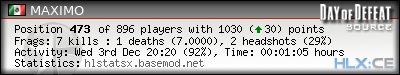 | Rank | Map | Kills | % | Ratio | Deaths | % | Ratio | K:D | Headshots | % | Ratio | HS:K |