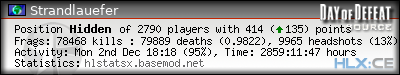 | Rank | Server | Kills | % | Ratio | Deaths | K:D | Headshots | Percentage of Headshots | % | HS:K |