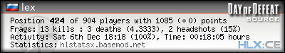 | Headshots per Kill: | 0.1538 (0.1538*) | |