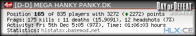 | Rank | Server | Kills | % | Ratio | Deaths | K:D | Headshots | Percentage of Headshots | % | HS:K |