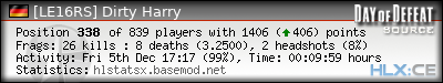 | Rank | Server | Kills | % | Ratio | Deaths | K:D | Headshots | Percentage of Headshots | % | HS:K |
