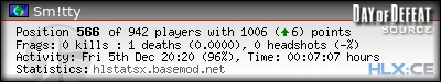 | Rank | Map | Kills | % | Ratio | Deaths | % | Ratio | K:D | Headshots | % | Ratio | HS:K |