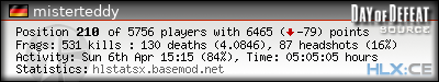 | Rank | Map | Kills | % | Ratio | Deaths | % | Ratio | K:D | Headshots | % | Ratio | HS:K |