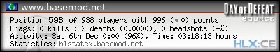 | Rank | Map | Kills | % | Ratio | Deaths | % | Ratio | K:D | Headshots | % | Ratio | HS:K |