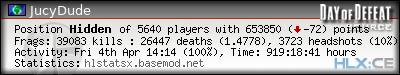 | Rank | Server | Kills | % | Ratio | Deaths | K:D | Headshots | Percentage of Headshots | % | HS:K |