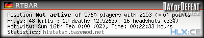 Rank | Server | Kills | % | Ratio | Deaths | K:D | Headshots | Percentage of Headshots | % | HS:K |