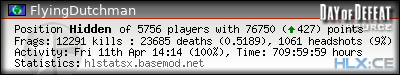| Rank | Server | Kills | % | Ratio | Deaths | K:D | Headshots | Percentage of Headshots | % | HS:K |