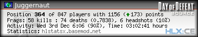 | Rank | Server | Kills | % | Ratio | Deaths | K:D | Headshots | Percentage of Headshots | % | HS:K |