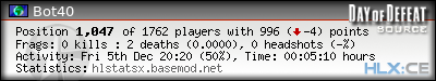 | Rank | Map | Kills | % | Ratio | Deaths | % | Ratio | K:D | Headshots | % | Ratio | HS:K |