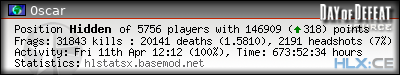 | Rank | Server | Kills | % | Ratio | Deaths | K:D | Headshots | Percentage of Headshots | % | HS:K |